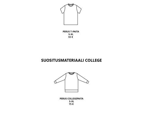 - Haluatko malliin muutoksia (esim. lyhyemmät hihat)
